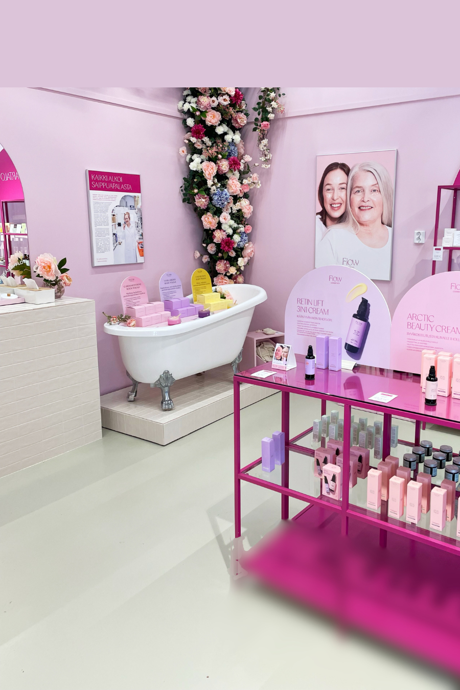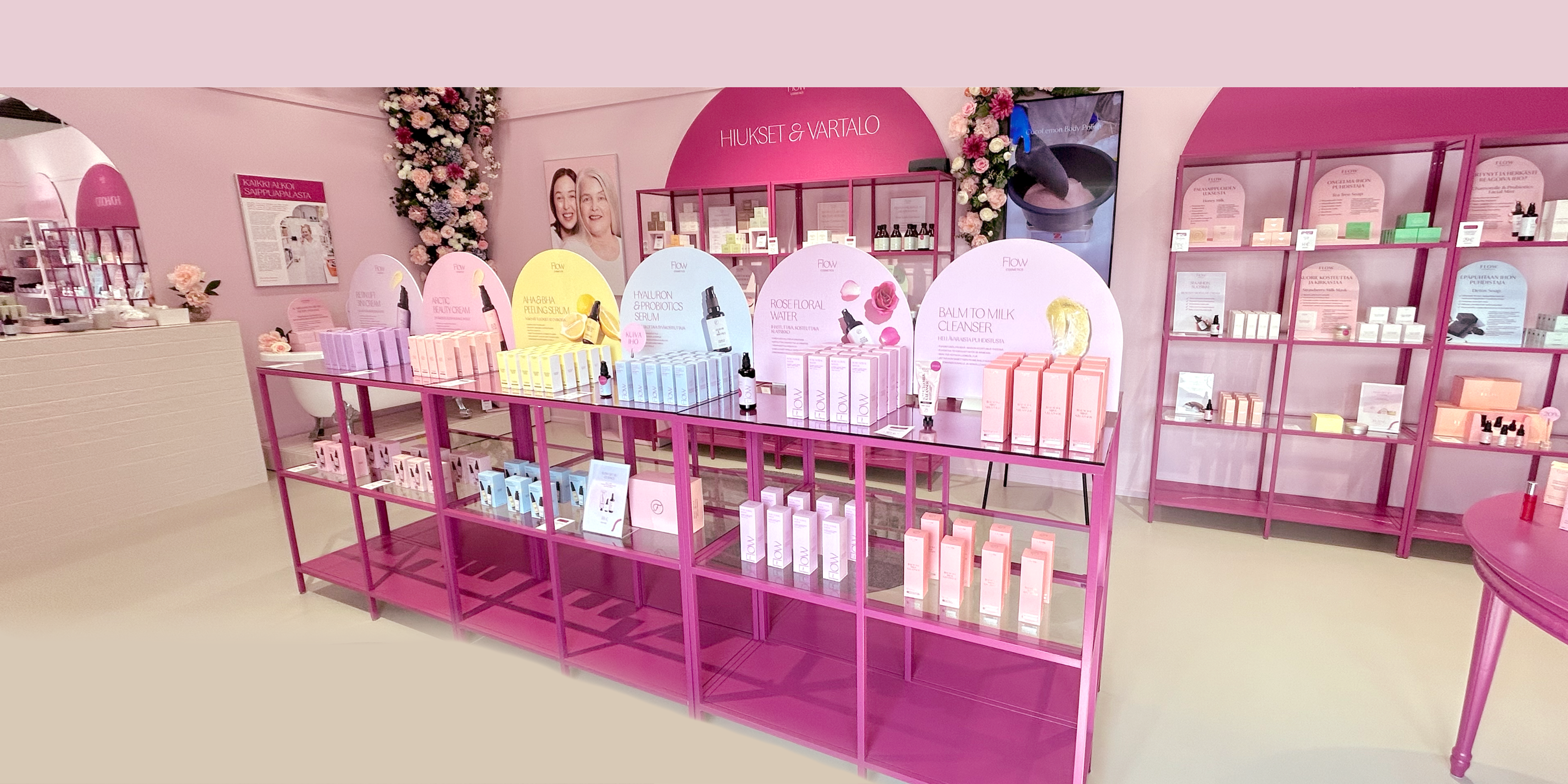 We regularly organise popular company visits to our Riihimäki factory outlet for small groups of 10-20 people. During the visit, group members get to learn about the story of Flow, innovative new products in Finnish natural cosmetics and get product and skincare routine recommendations for their skin. We tailor the visits to suit your wishes.