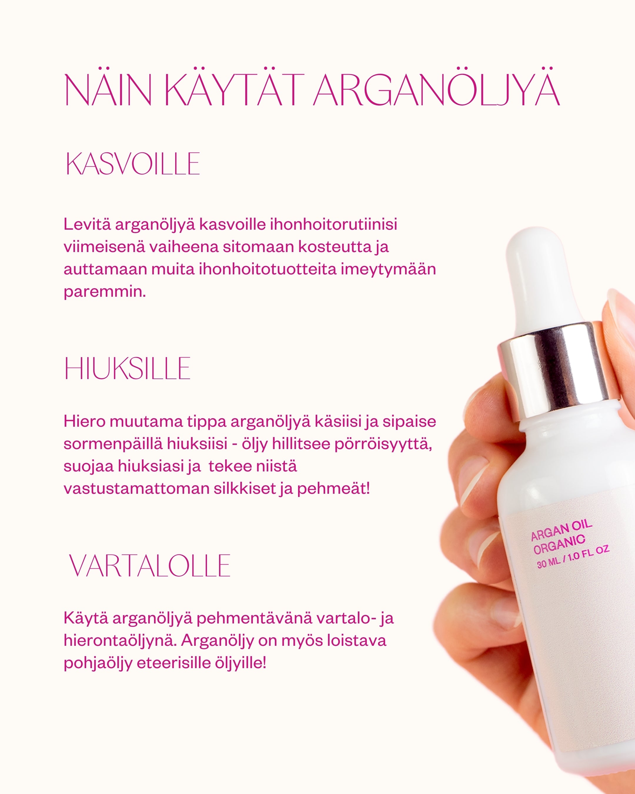 FLOW EXCLUSIVE, ONLY FROM FLOW ONLINE STORE AND FACTORY STORE! Argan oil is a versatile oil for face, body, and hair care. It is suitable for the whole family to care for, protect, and moisturize skin and hair.