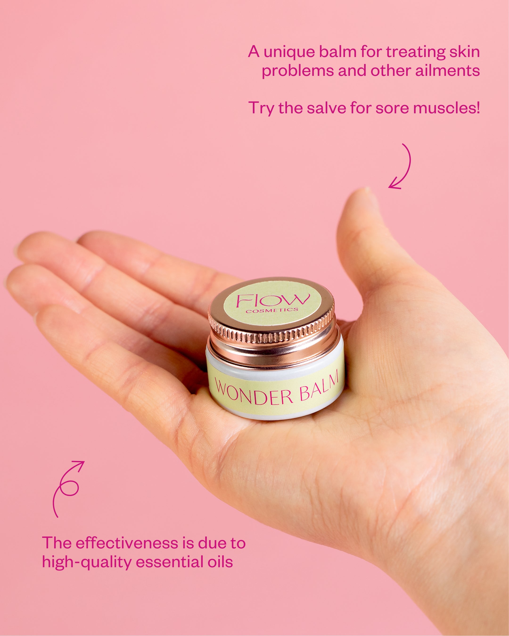 FLOW EXCLUSIVE, ONLY FROM THE FLOW ONLINE STORE AND FACTORY STORE! The Wonder Balm ointment containing eucalyptus and tea tree oil is suitable for many ailments, such as sore muscles, stuffy nose, insect bites, itchy skin, and as a lip balm.