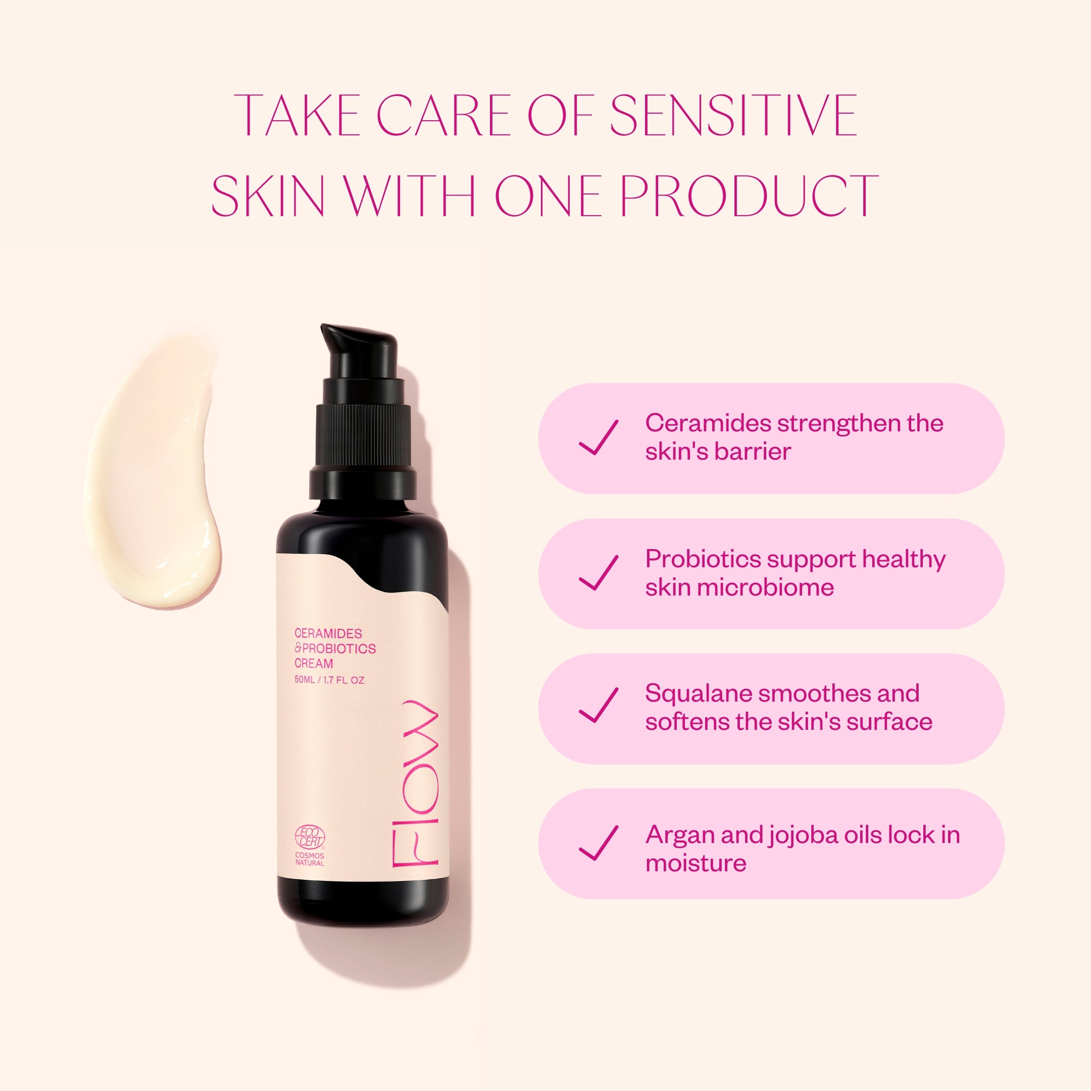 Proven high-quality natural cosmetics: Ceramides & Probiotics has received the prestigious Ecocert Cosmos Natural certificate.Key ingredients
