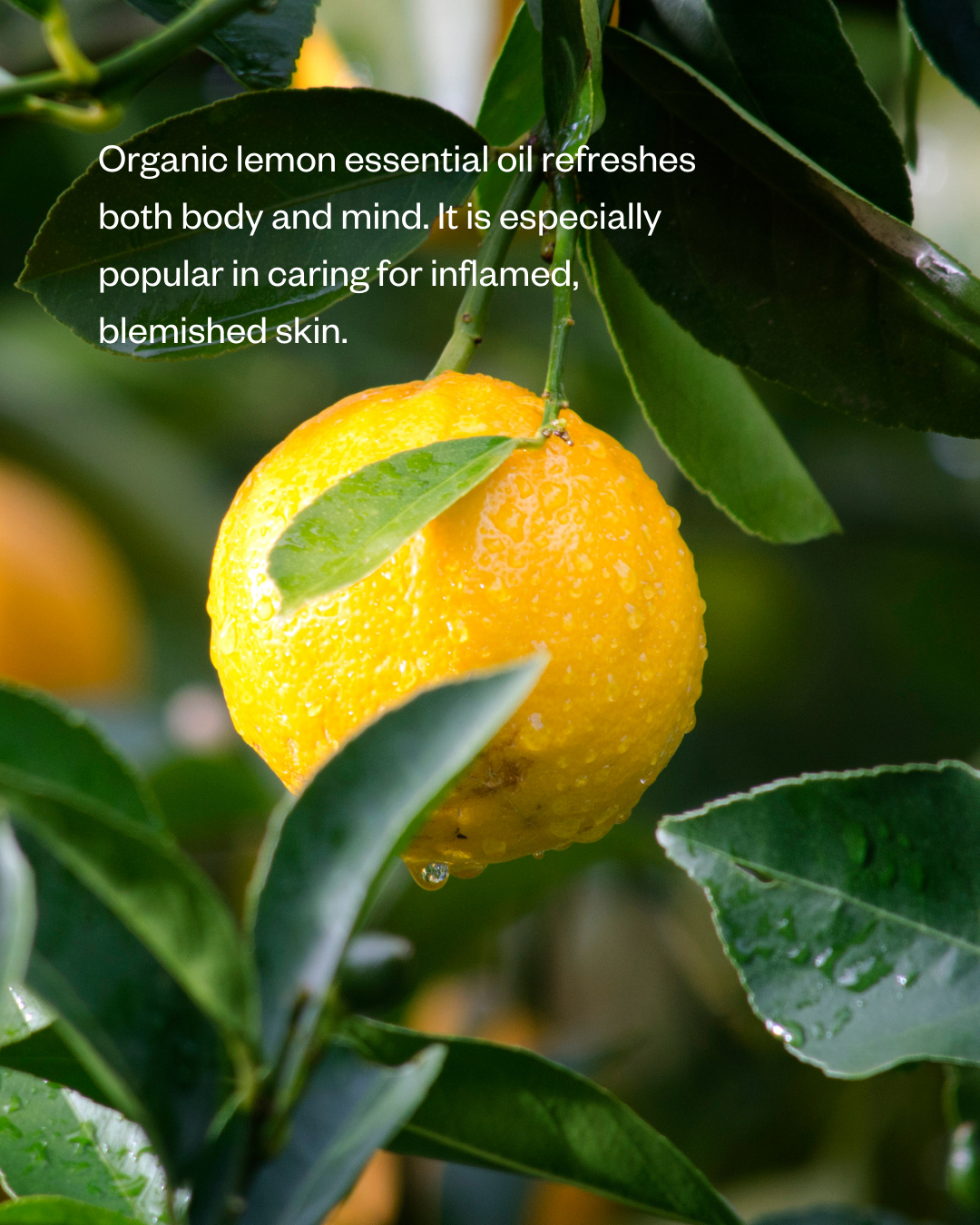 - Lemon essential oil: Fresh organic lemon is antimicrobial and anti-inflammatory. Brightens the skin. Suitable for impure skin. Energizing and refreshing scent.