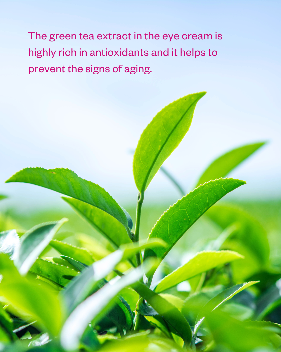 This eye cream, enriched with antioxidant-rich and nourishing green tea, refreshing caffeine, and skin-renewing peptides, helps reduce the signs of aging. It smooths wrinkles and fine lines, diminishes dark circles, and alleviates puffiness under the eyes.