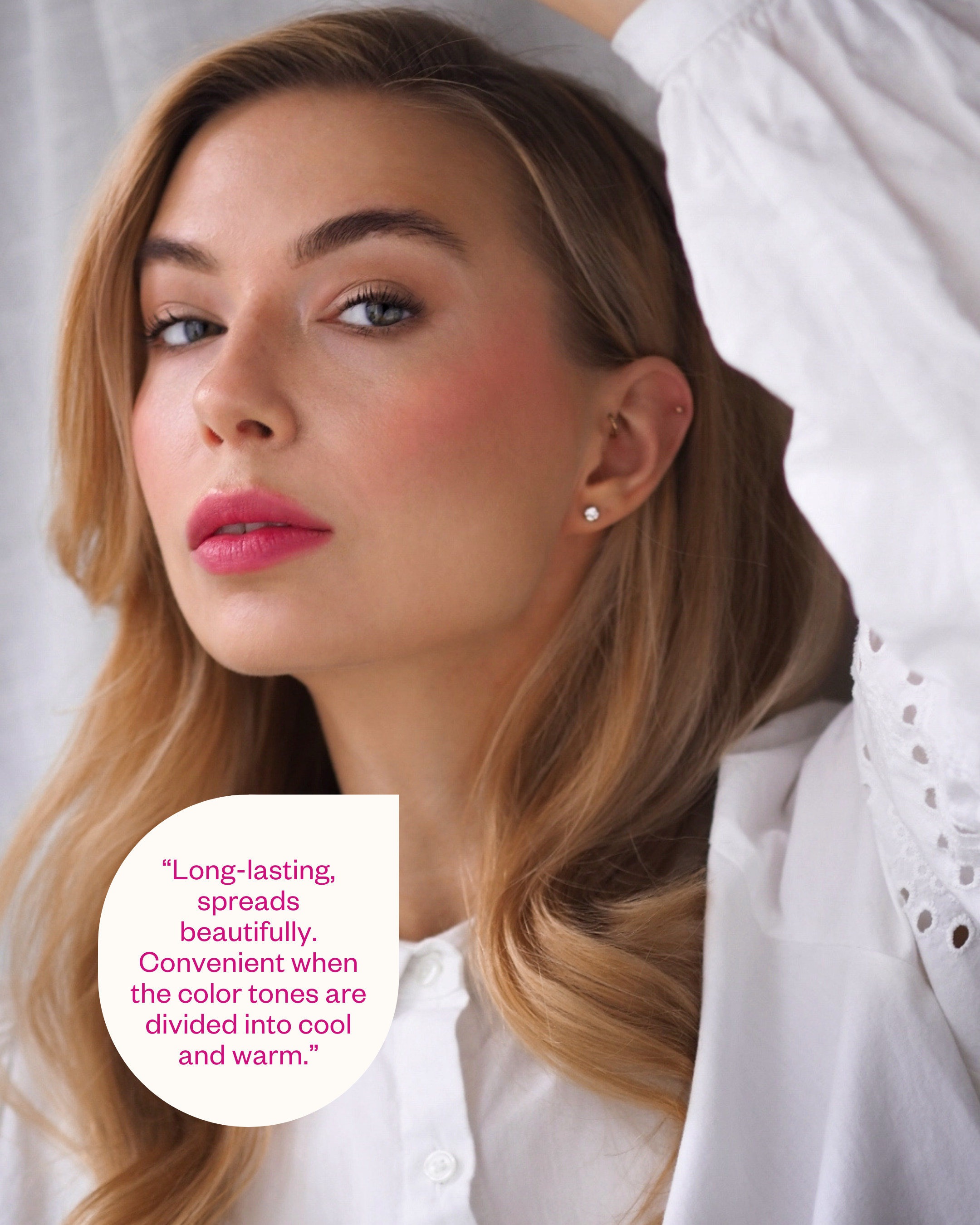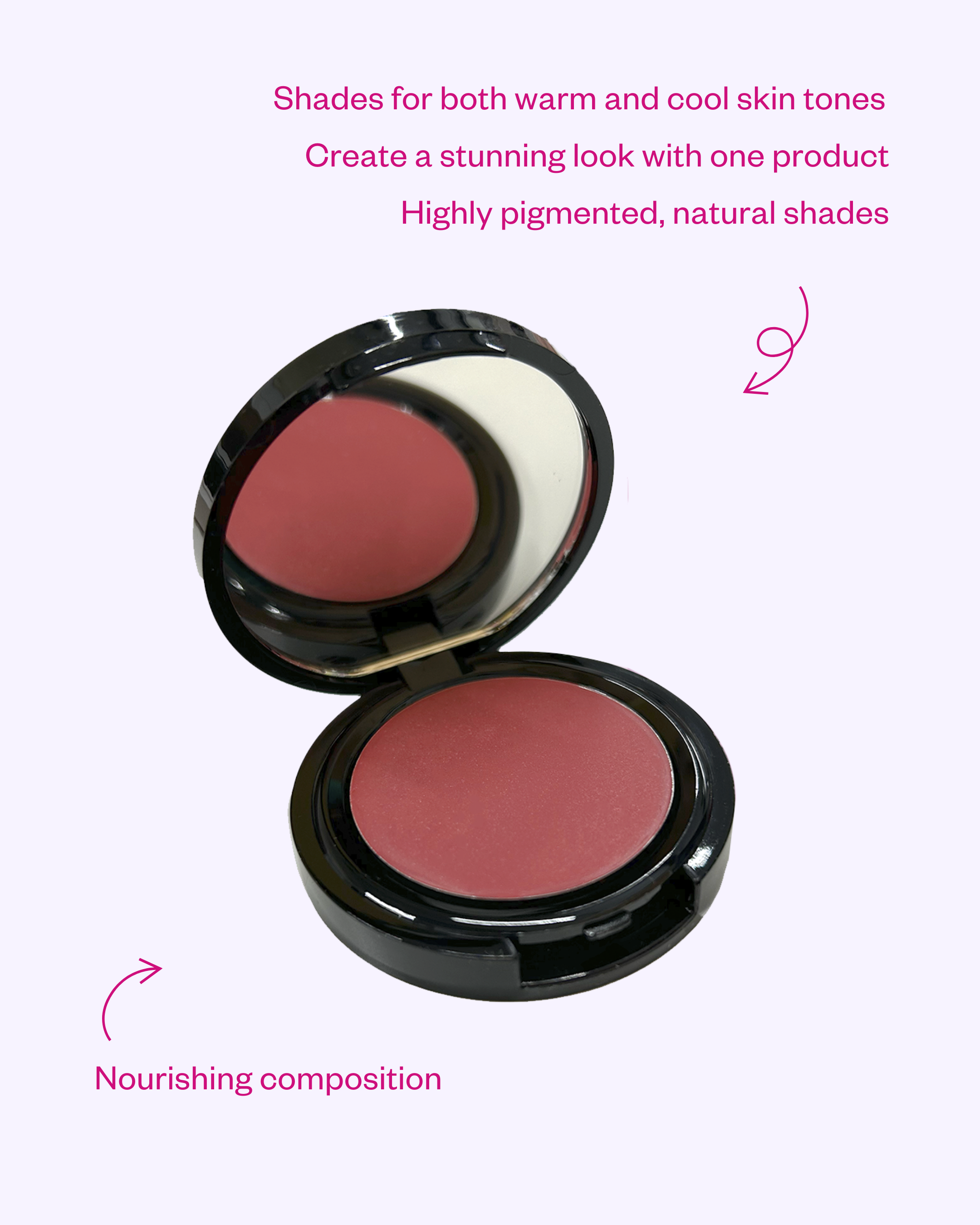 With this multi-functional product, you can create delicious lips and perky cheeks. Made from natural ingredients, the caring and moisturizing color nourishes the skin and brings radiance. It is suitable for all skin types. The composition includes Korento's own berry cocktail, Berry Active Complex™, which contains the best skin-restoring properties of northern berries.